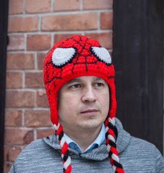 Яркая вязаная шапка отважного героя Спайдермэн и самого популярного и коммерчески успешного супергероя комиксов/
