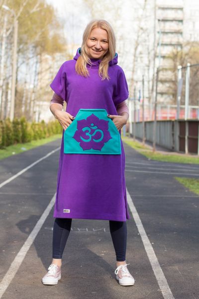 Впереди большой вместительный карман с аппликацией знака Ом.